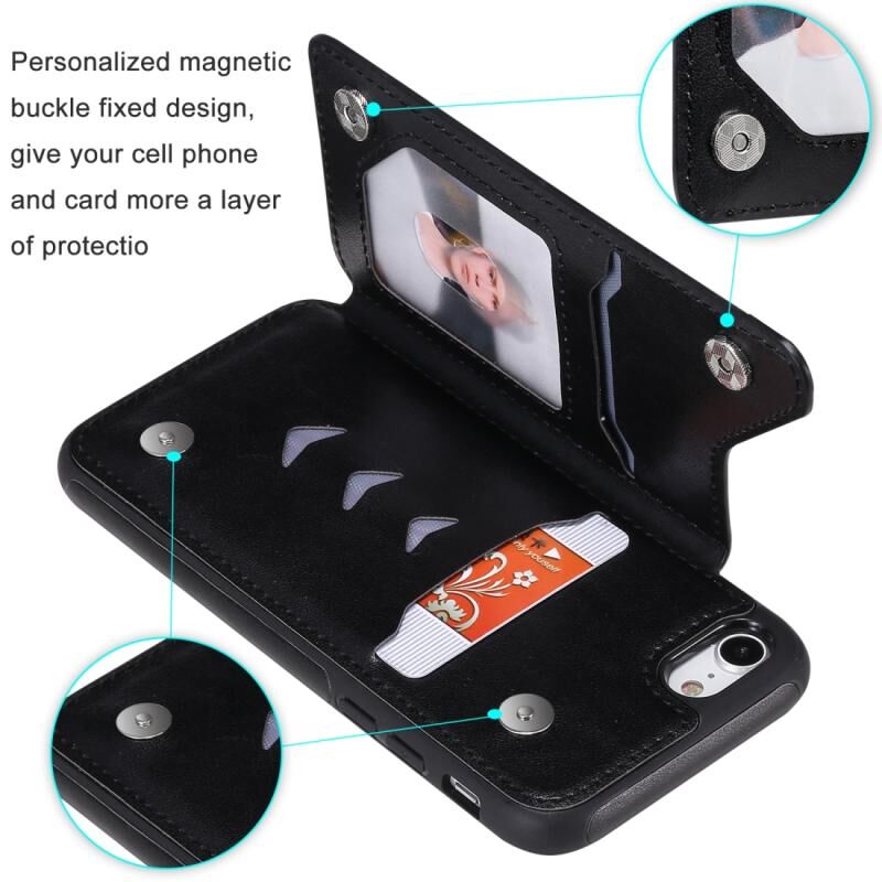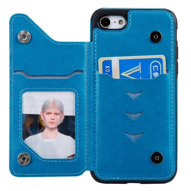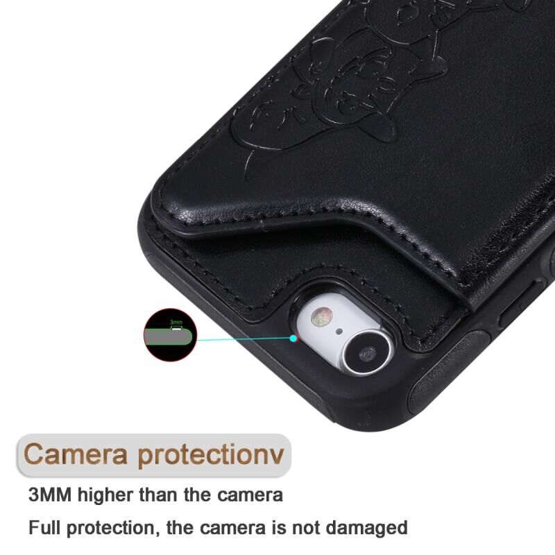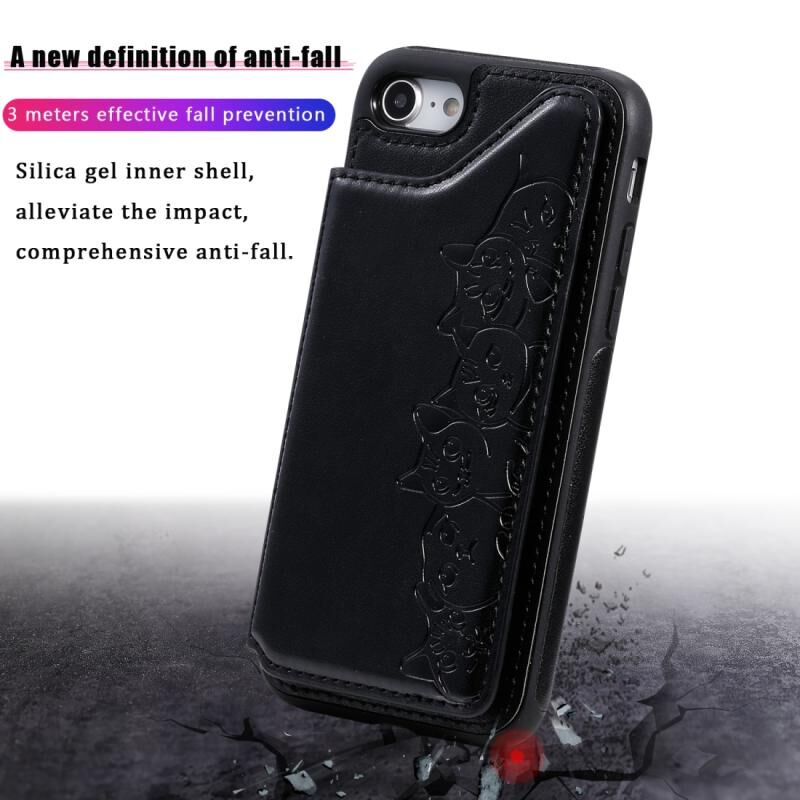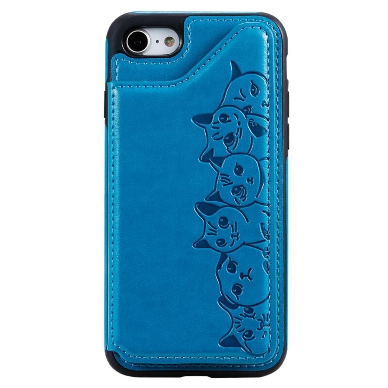 For iPhone 7 / 8 Six Cats Embossing Pattern Protective Case with Holder & Card Slots & Photo Frame(Blue)