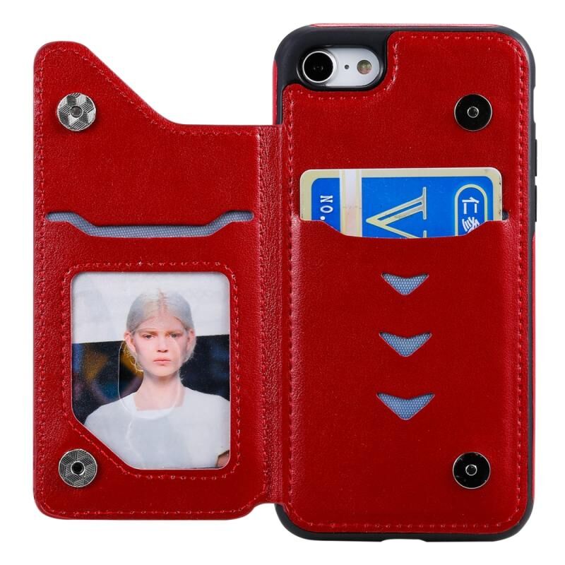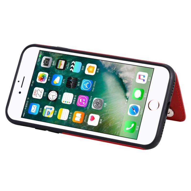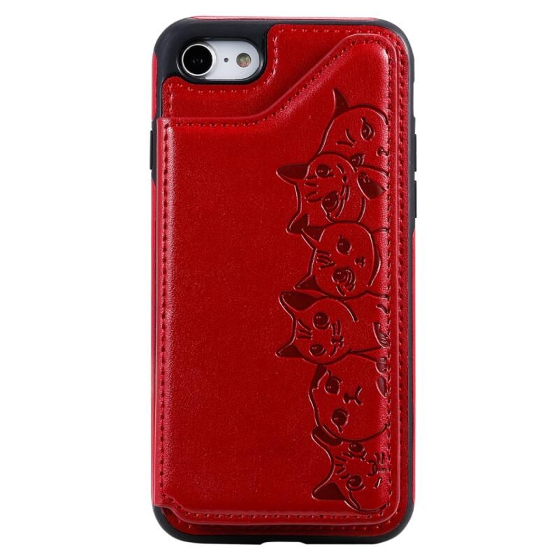 For iPhone 7 / 8 Six Cats Embossing Pattern Protective Case with Holder & Card Slots & Photo Frame(Red)