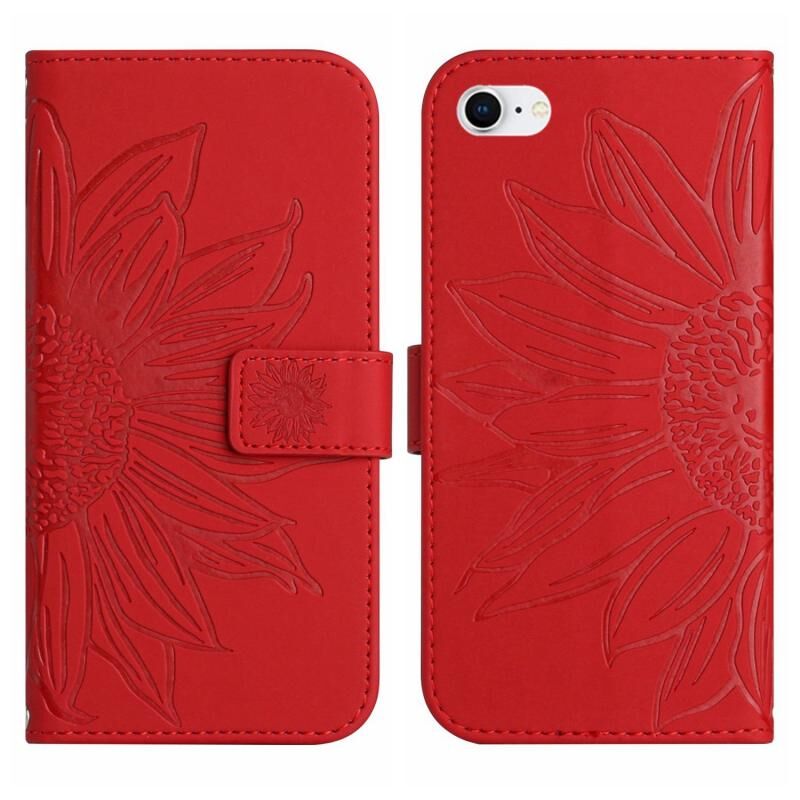 Θήκη τηλεφώνου από δέρμα με σχέδιο ηλιοτρόπιου και αίσθηση δέρματος για iPhone 7 / 8, με λουρί (Κόκκινο)