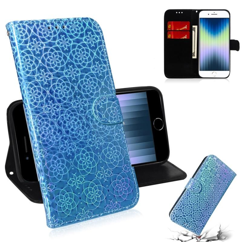 Θήκη για iPhone 7 / 8, μονόχρωμη, πολύχρωμη, με μαγνητικό κούμπωμα, οριζόντια, από δερματίνη PU, με βάση στήριξης & θήκες για κάρτες & πορτοφόλι & κορδόνι (Μπλε)