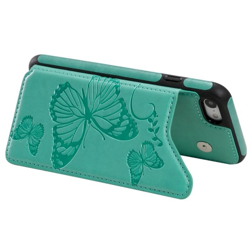 Θήκη προστασίας για iPhone 7 & 8 με ανάγλυφο σχέδιο πεταλούδας, αντικραδασμική, με βάση στήριξης, θήκες για κάρτες & κορνίζα φωτογραφιών (πράσινο)