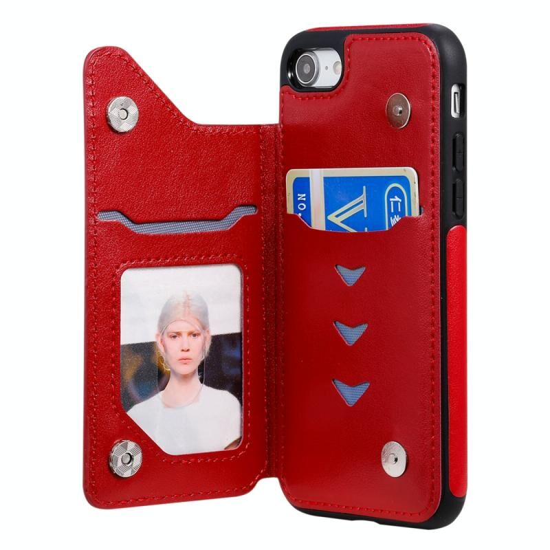 Θήκη προστασίας για iPhone 7 & 8 με ανάγλυφο σχέδιο πεταλούδας, αντικραδασμική, με βάση στήριξης, θήκες για κάρτες & κορνίζα φωτογραφιών (Κόκκινο)