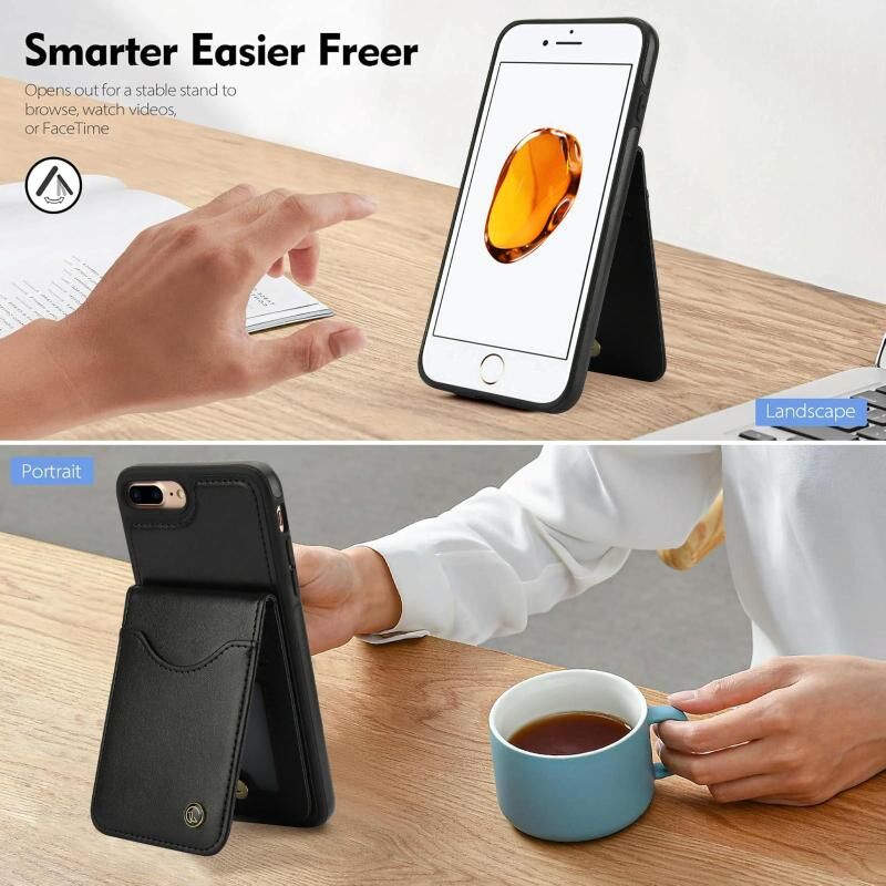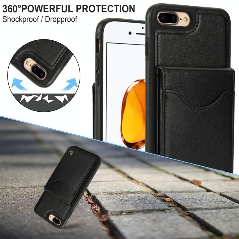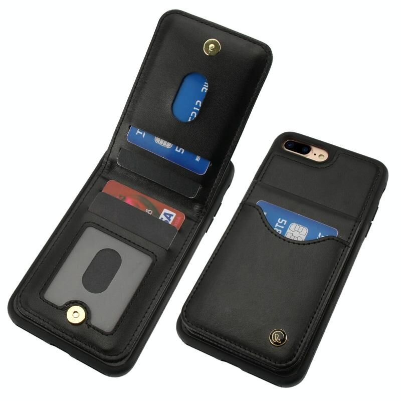 Για iPhone 7 Plus / 8 Plus AwQuer Θήκη Τηλεφώνου από Δέρμα με Κάτοχο Κάρτας και Κάθετη Αναδίπλωση (Μαύρο) (Awquer)