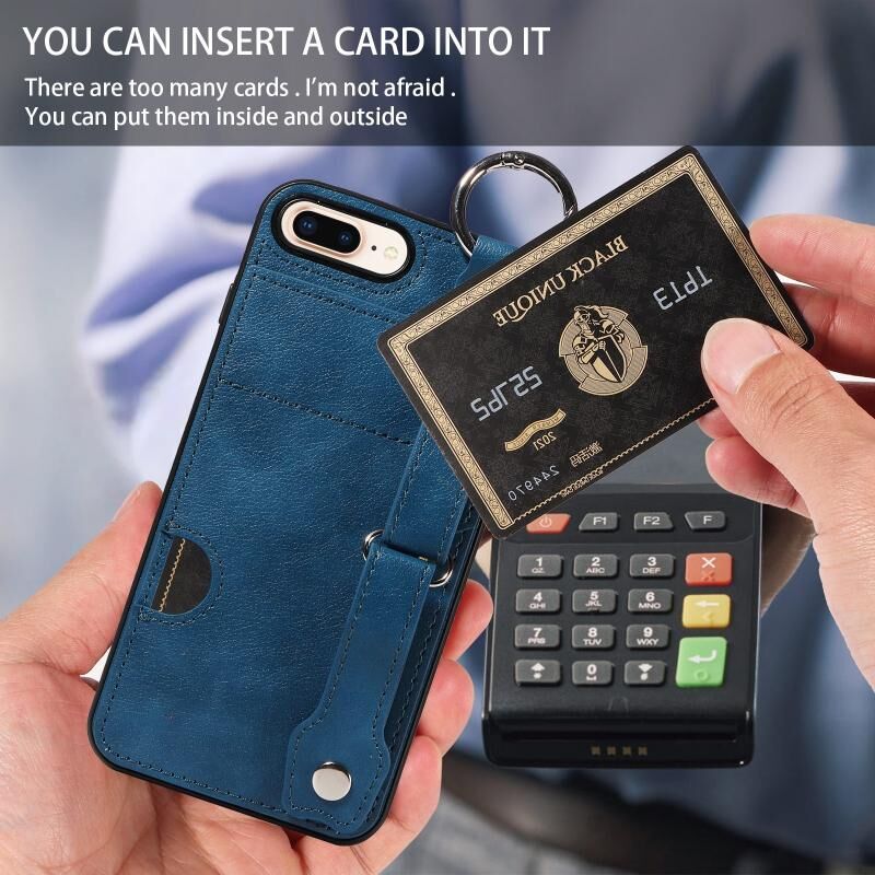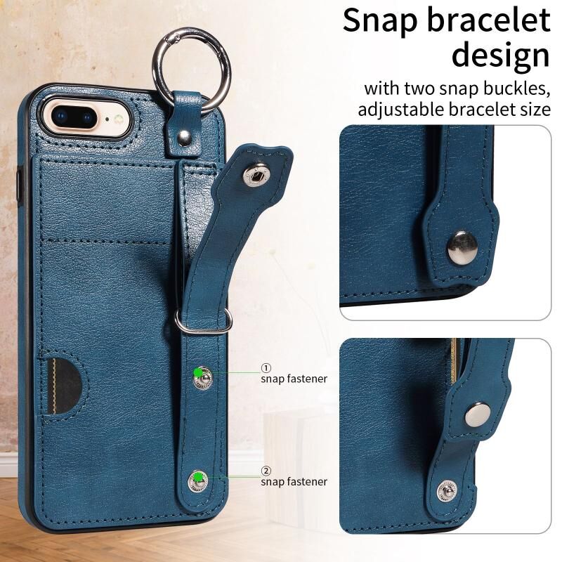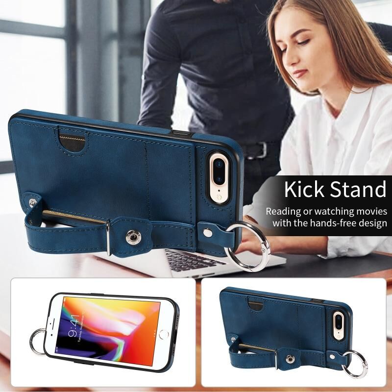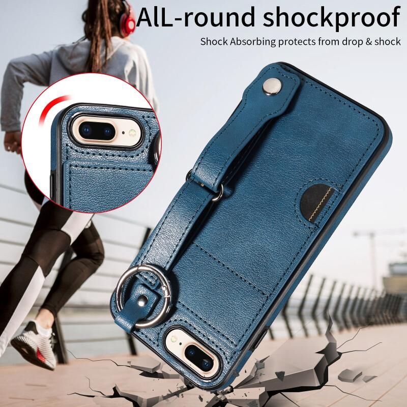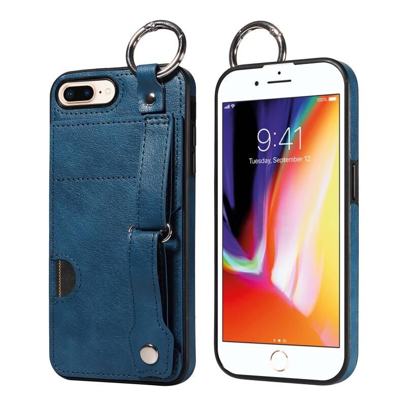 Θήκη τηλεφώνου για iPhone 7 Plus / 8 Plus με υφή δέρματος μοσχαριού, υποδοχή κάρτας καρπού και δακτύλιο (Ροζ)