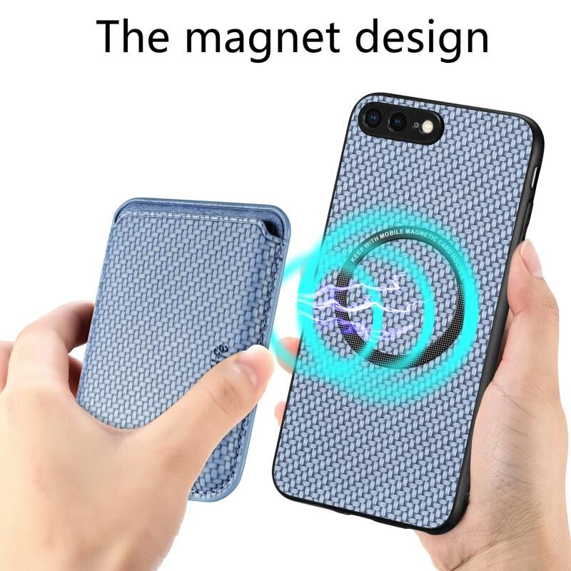 For iPhone 7 Plus / 8 Plus Carbon Fiber Leather Card Magsafe Magnetic Phone Case(Blue)