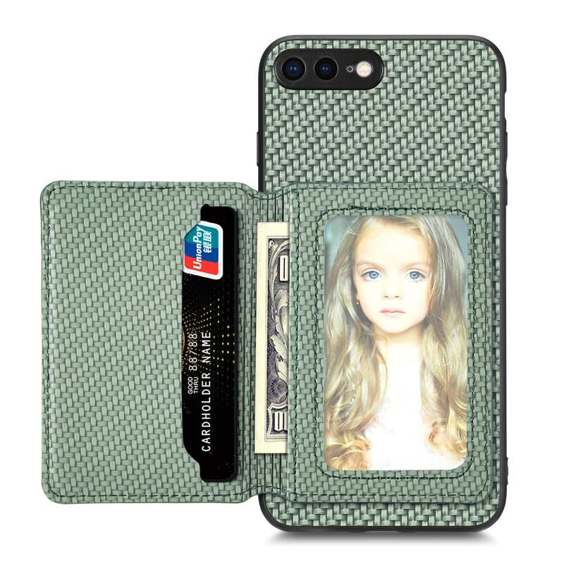 Θήκη τηλεφώνου με μαγνητική τσέπη για κάρτες από ανθρακονήματα για iPhone 7 Plus / 8 Plus (Πράσινο)