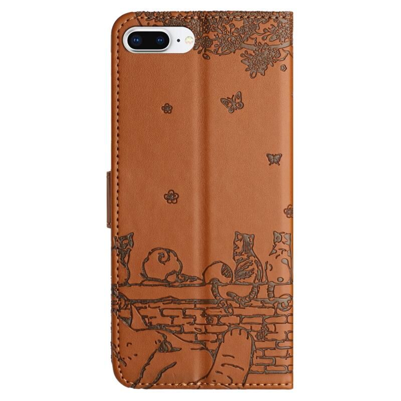 Θήκη τηλεφώνου από δέρμα με ανάγλυφο σχέδιο γάτας για iPhone 7 Plus / 8 Plus με κορδόνι (Καφέ)