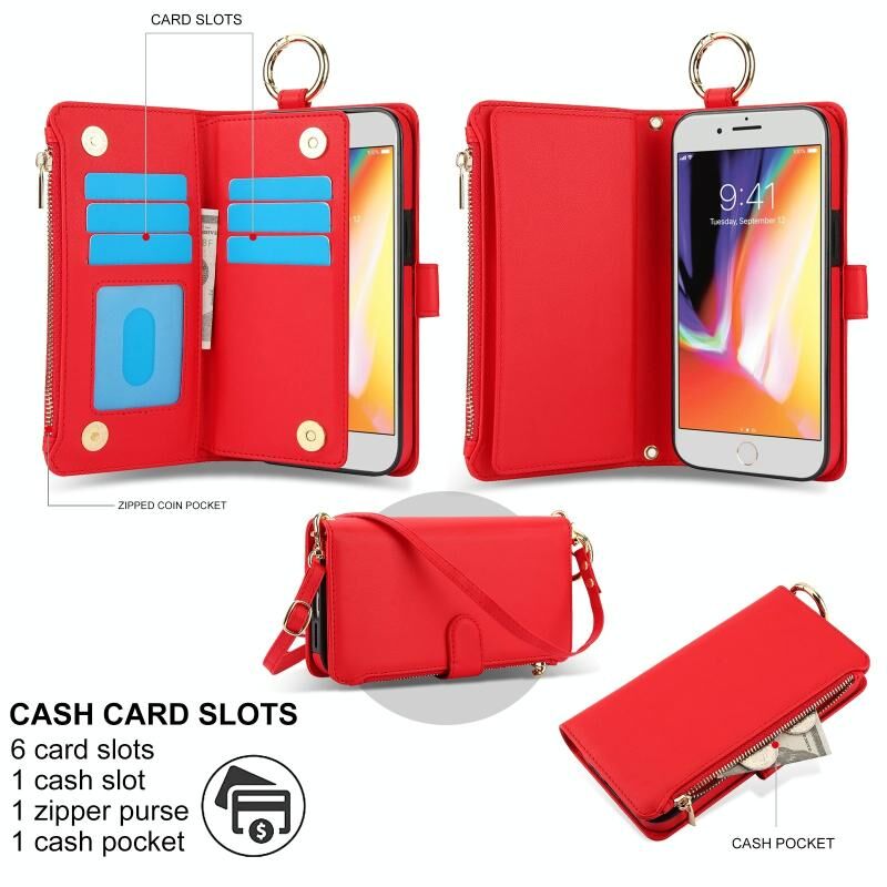 2. Λειτουργία πολλαπλών καρτών & πορτοφολιού: 6 υποδοχές καρτών και ένα διαμέρισμα με φερμουάρ για την αποθήκευση των πιστωτικών σας καρτών, μετρητών ή μικρών σημειώσεων για καθημερινή χρήση.