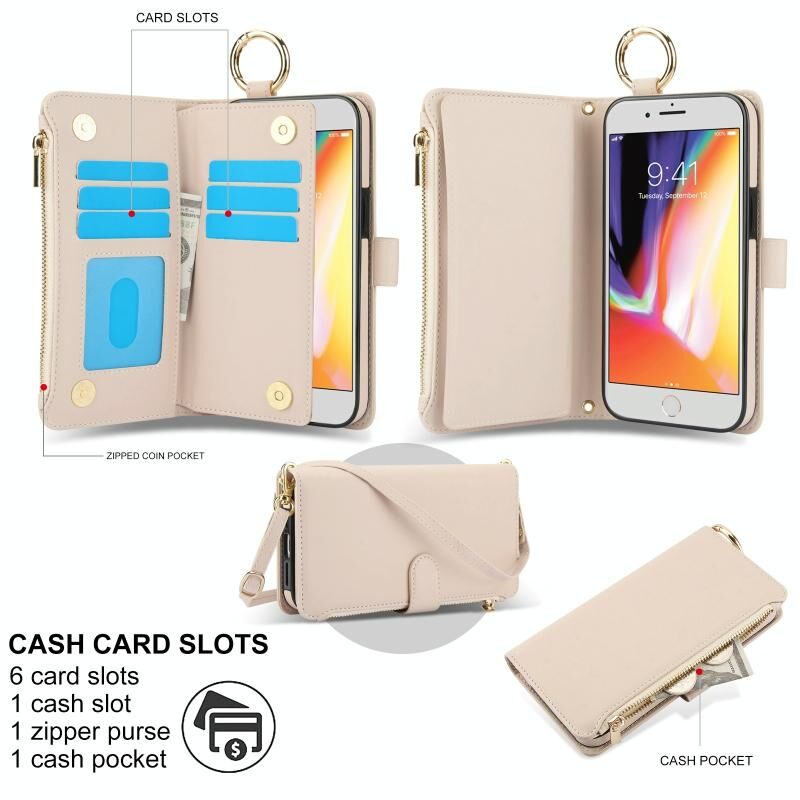 2. Λειτουργία πολλαπλών καρτών & πορτοφολιού: 6 υποδοχές καρτών και ένα διαμέρισμα με φερμουάρ για την αποθήκευση των πιστωτικών σας καρτών, μετρητών ή μικρών σημειώσεων για καθημερινή χρήση.