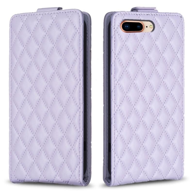 Θήκη τηλεφώνου από δέρμα με κάθετη αναδίπλωση και σχέδιο διαμαντένιου πλέγματος για iPhone 7 Plus / 8 Plus (Σκούρο Μωβ)