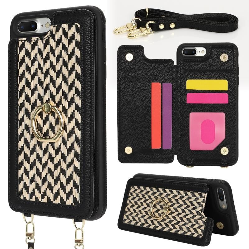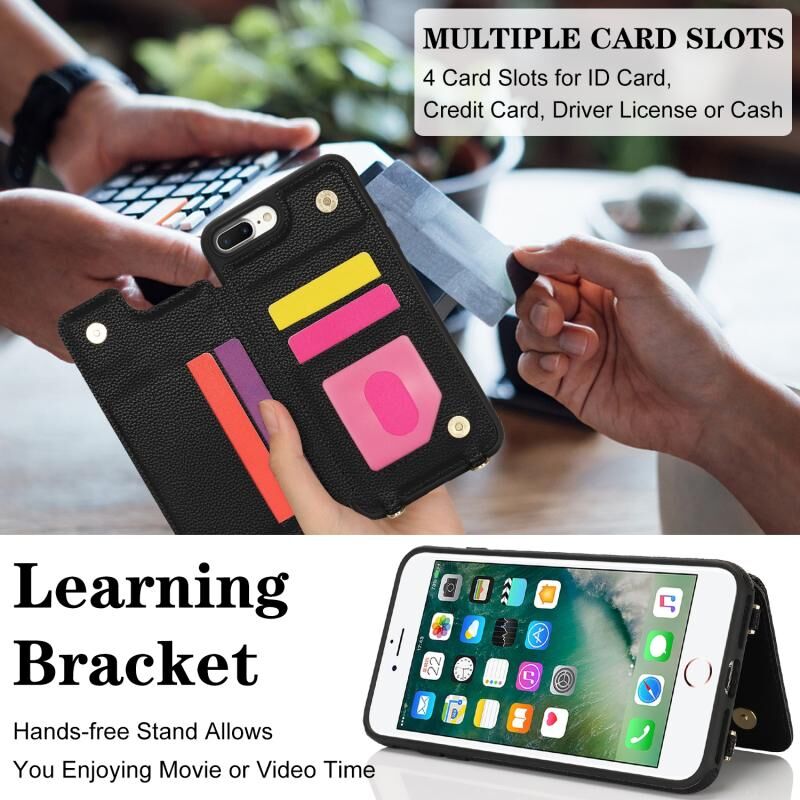 Θήκη τηλεφώνου πλήρους κάλυψης με διπλή πόρπη για κάρτες και λουρί crossbody για iPhone 7 Plus / 8 Plus (Μαύρο)