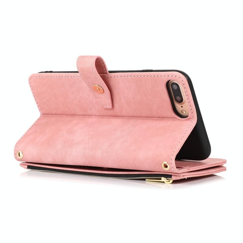 Θήκη τηλεφώνου από δέρμα με φερμουάρ και θήκη πορτοφολιού 9 καρτών Dream για iPhone 7 Plus / 8 Plus (ρόζ)