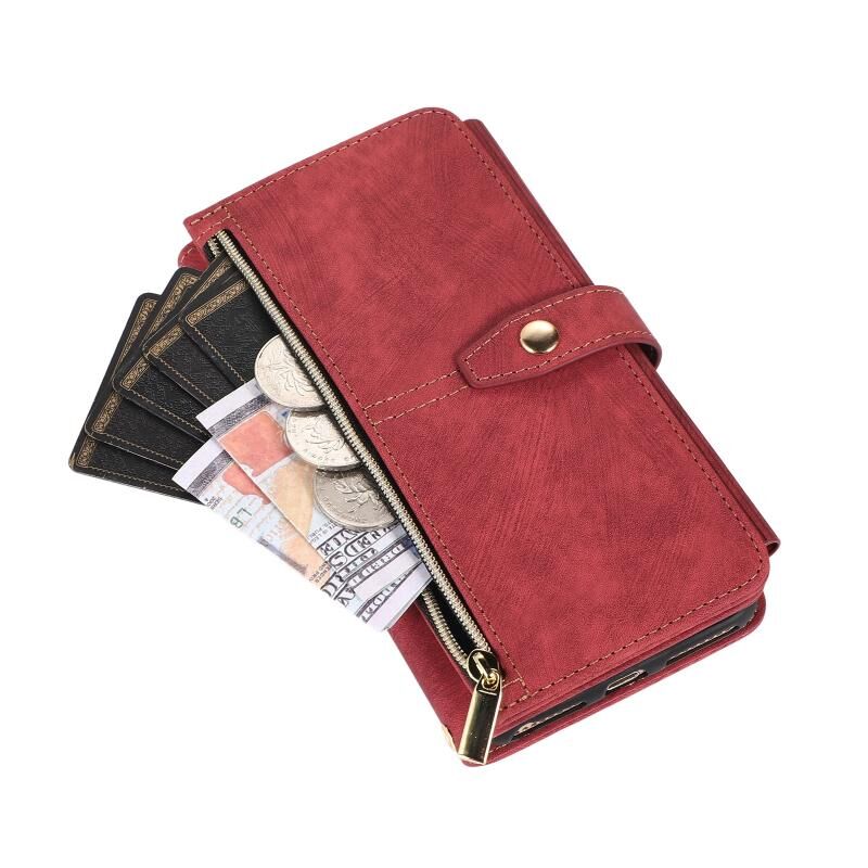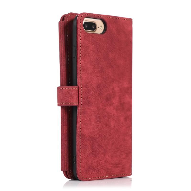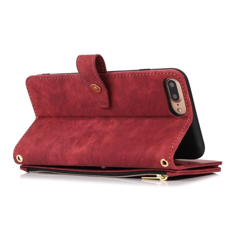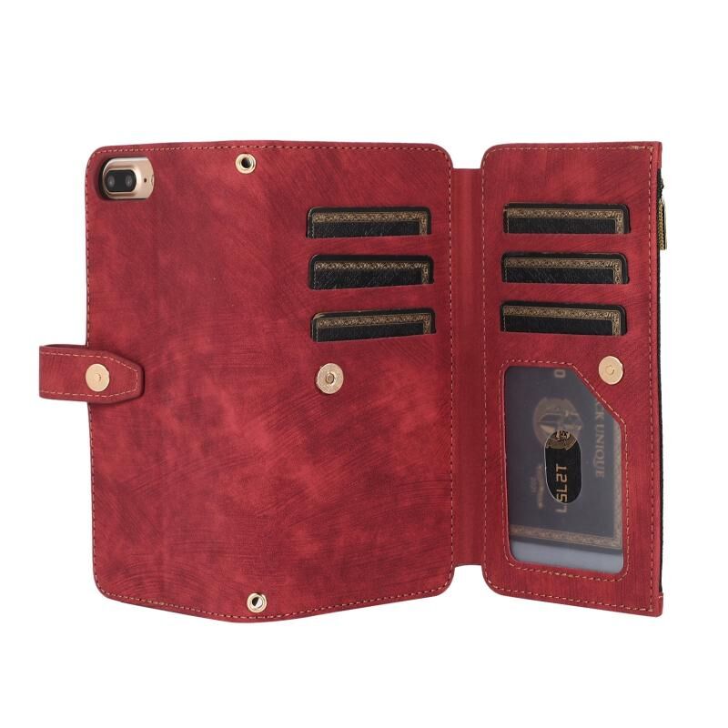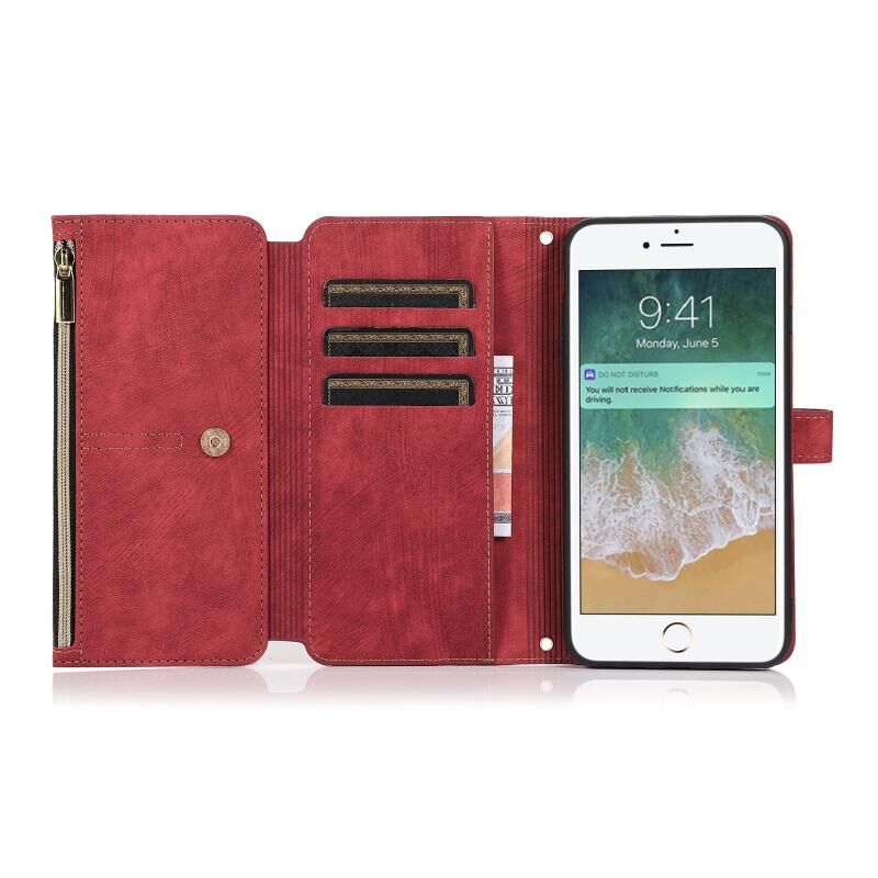 Θήκη τηλεφώνου από δέρμα με φερμουάρ και θήκη πορτοφολιού 9 καρτών Dream για iPhone 7 Plus / 8 Plus (Κόκκινο)