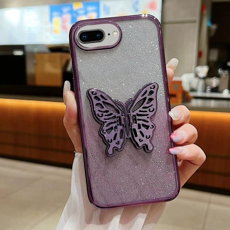 Θήκη τηλεφώνου TPU 3D πεταλούδας με ηλεκτρολυτική διαβάθμιση και λάμψη για iPhone 7 Plus / 8 Plus (Διαβαθμισμένο Μωβ)