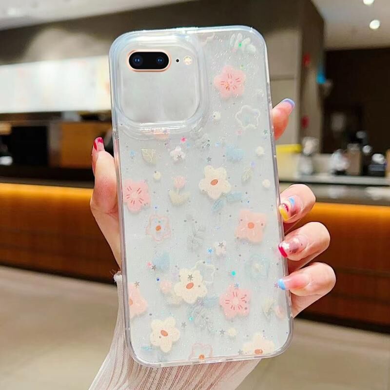 Θήκη τηλεφώνου για iPhone 7 Plus / 8 Plus, φρέσκια, μικρή, λουλουδάτη, από εποξειδική ρητίνη TPU (D02 χειροποίητο λουλούδι)