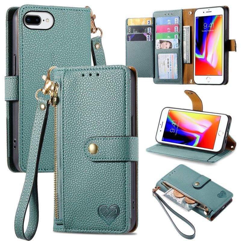 Θήκη τηλεφώνου από δέρμα με φερμουάρ και λουρί για iPhone 7 Plus / 8 Plus (Ροζ)