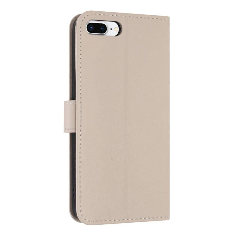 For iPhone 7 Plus / 8 Plus Metal Bow Leather Phone Case with Hand Strap(Apricot)