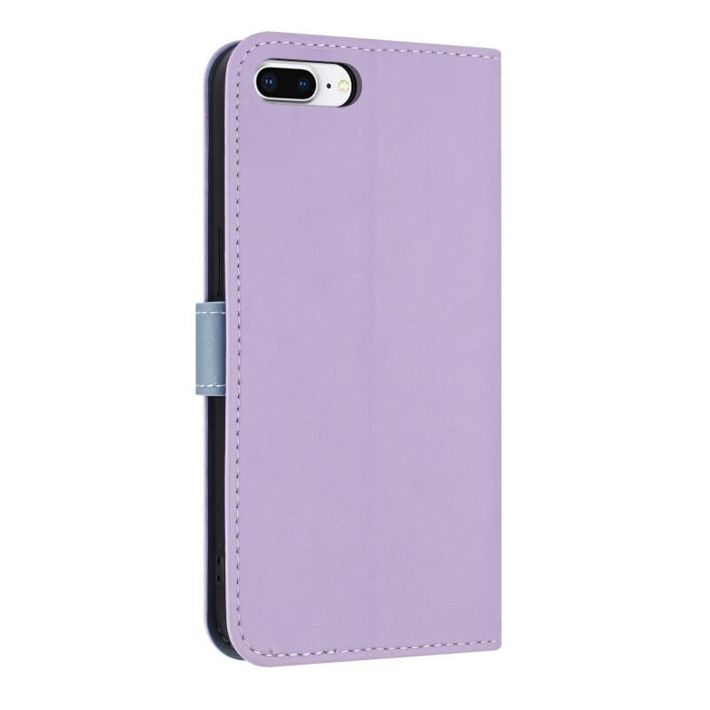 For iPhone 7 Plus / 8 Plus Metal Bow Leather Phone Case with Hand Strap(Purple)