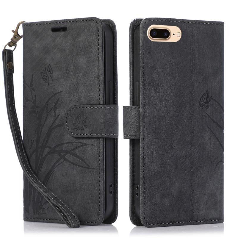 Θήκη τηλεφώνου από δέρμα με ανάγλυφο σχέδιο ορχιδέας και πεταλούδας για iPhone 7 Plus / 8 Plus (Μαύρο)