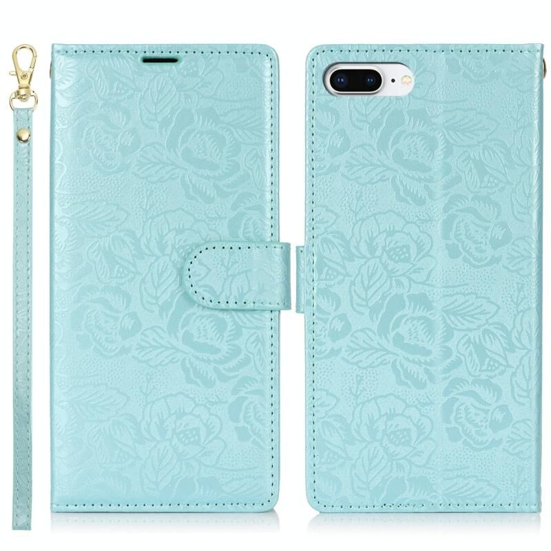 For iPhone 7 Plus / 8 Plus Peony Flowers Imprint Leather Phone Case(Sky Blue)