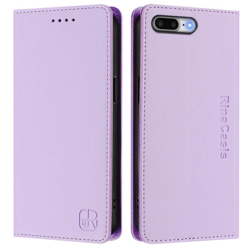 For iPhone 7 Plus / 8 Plus RC01 Dual-Folded Magnetic Suction RFID Leather Phone Case(Light Purple)