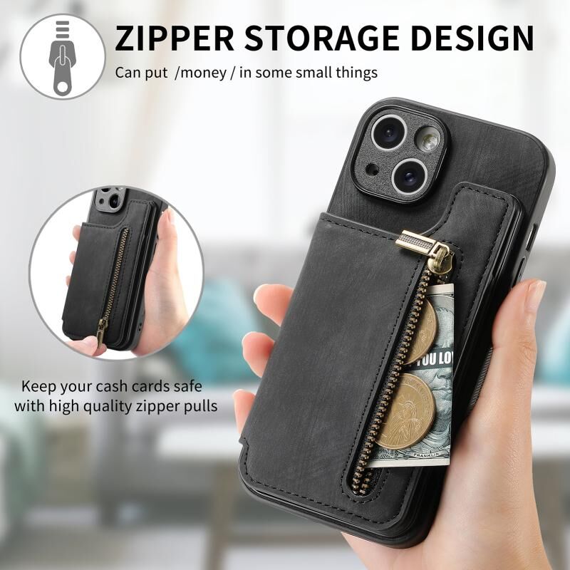 Για iPhone 7 Plus / 8 Plus Ρετρό δέρμα φερμουάρ πορτοφόλι πίσω θήκη τηλεφώνου (Μαύρο)