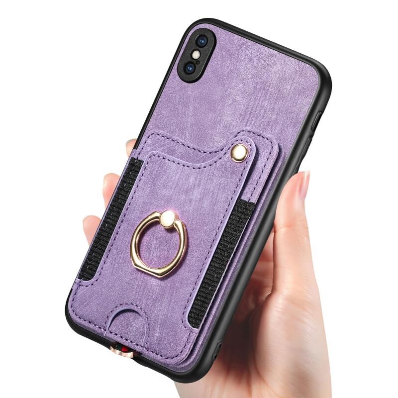 Θήκη τηλεφώνου για iPhone 7 Plus / 8 Plus με ρετρό υφή, δακτύλιο και πολλαπλές θήκες καρτών (Ροζ)