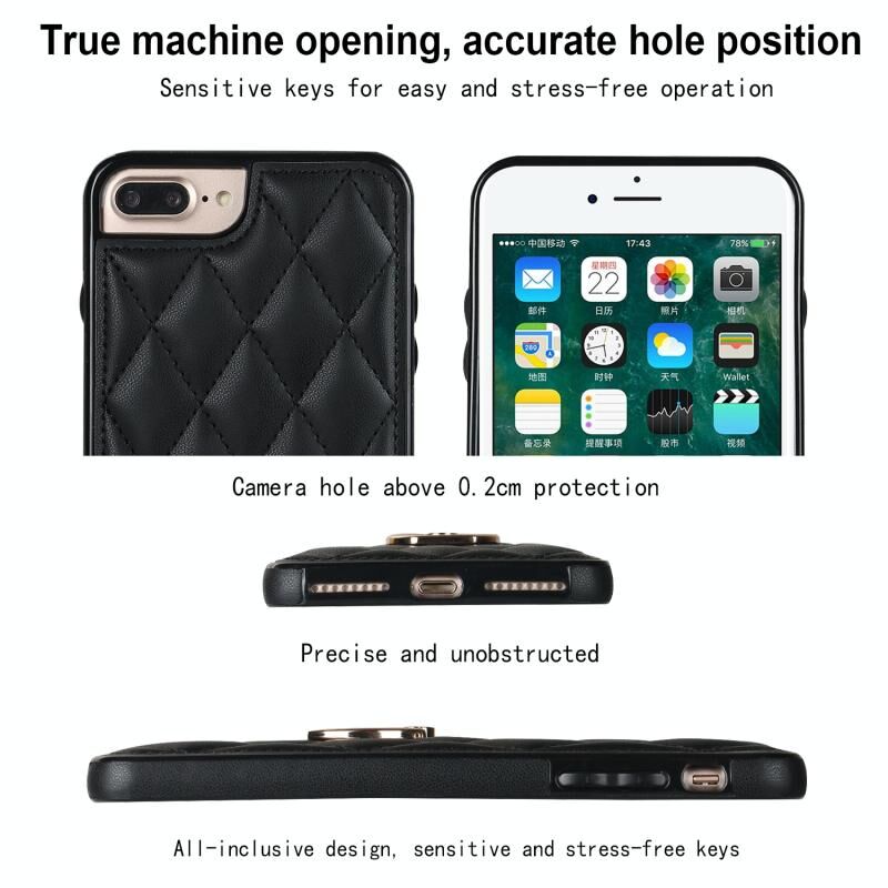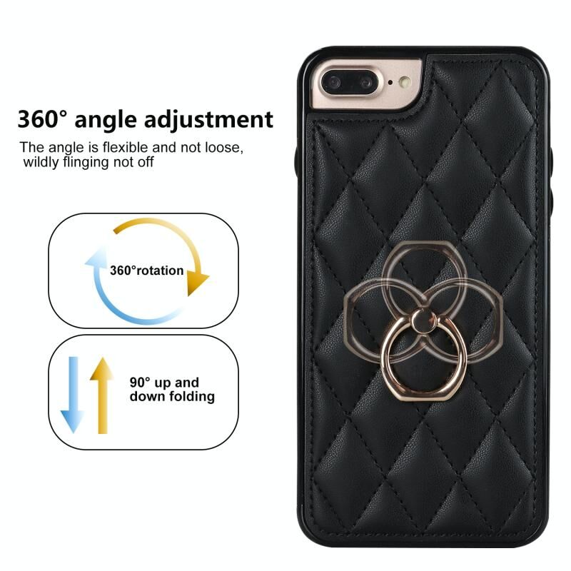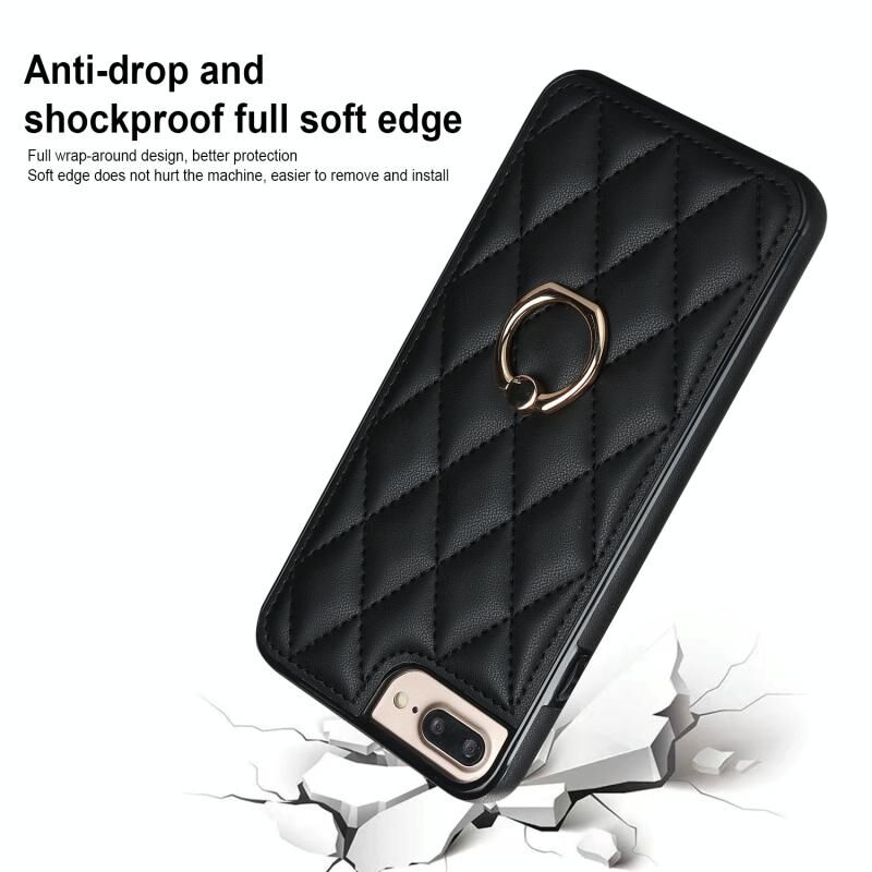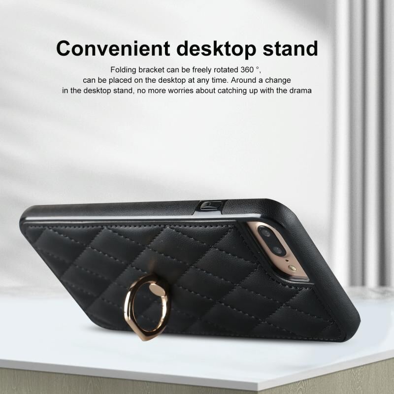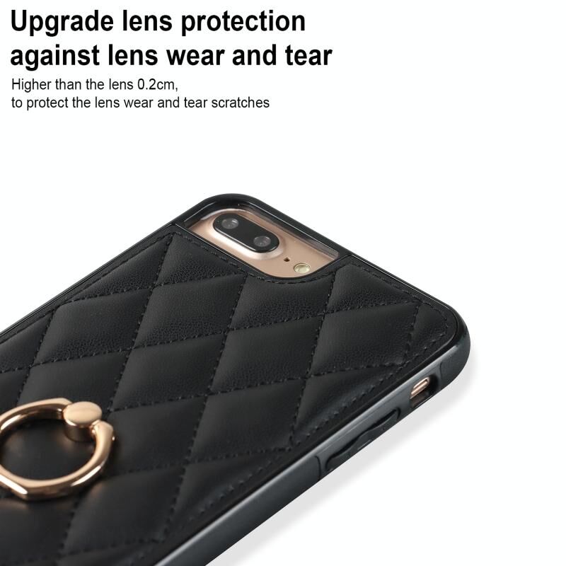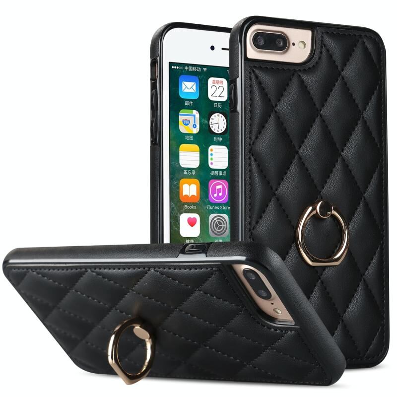 For iPhone 7 Plus / 8 Plus Rhombic PU Leather Phone Case with Ring Holder(Black)