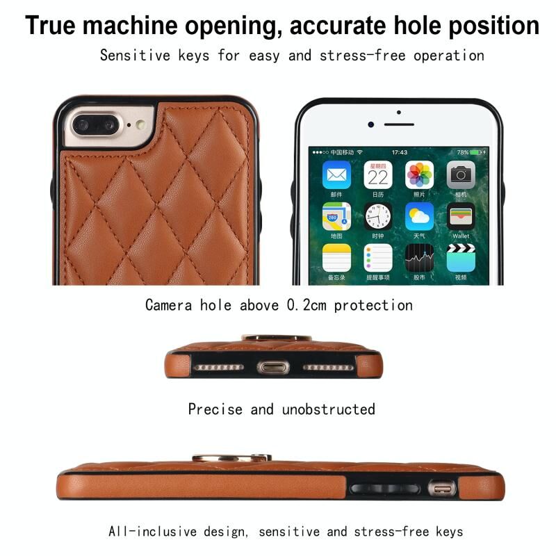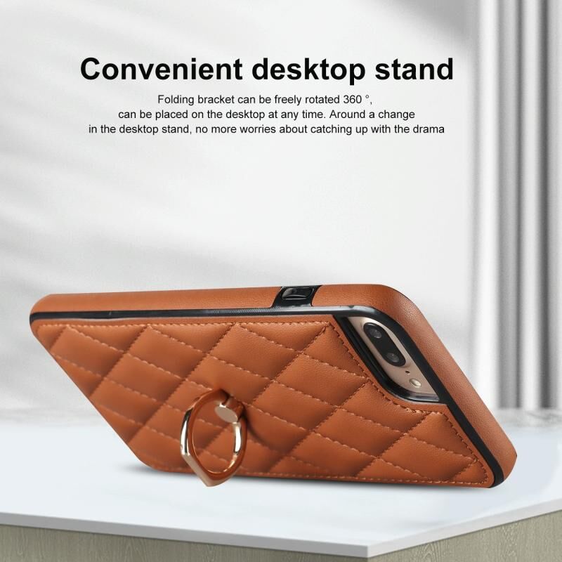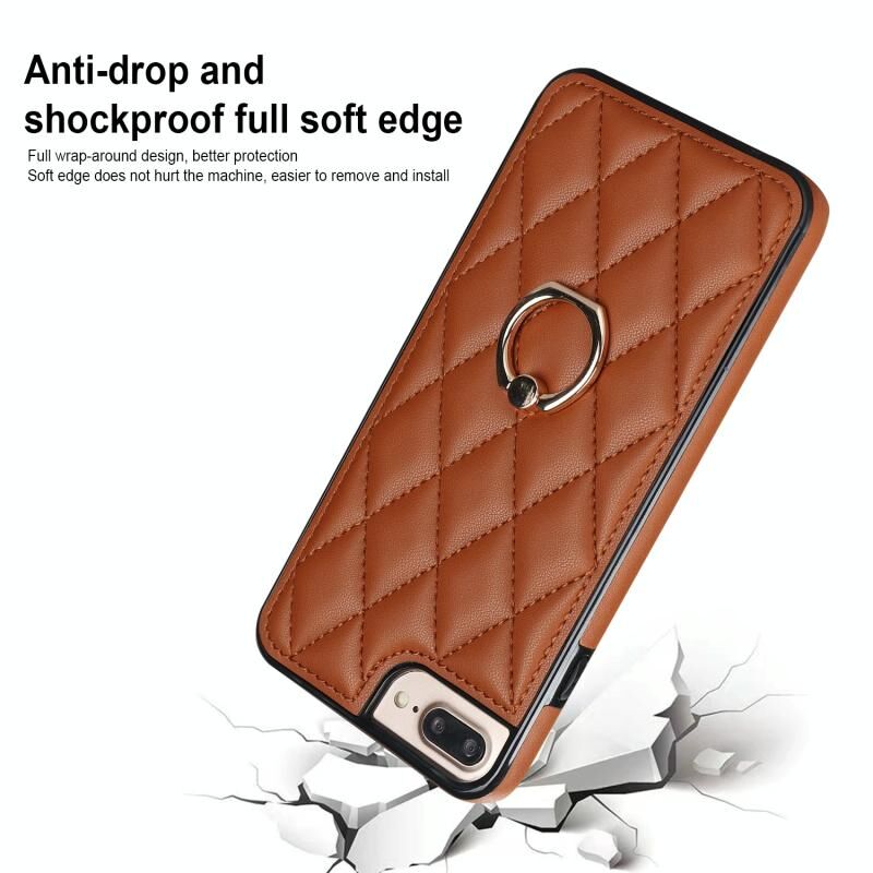 For iPhone 7 Plus / 8 Plus Rhombic PU Leather Phone Case with Ring Holder(Brown)