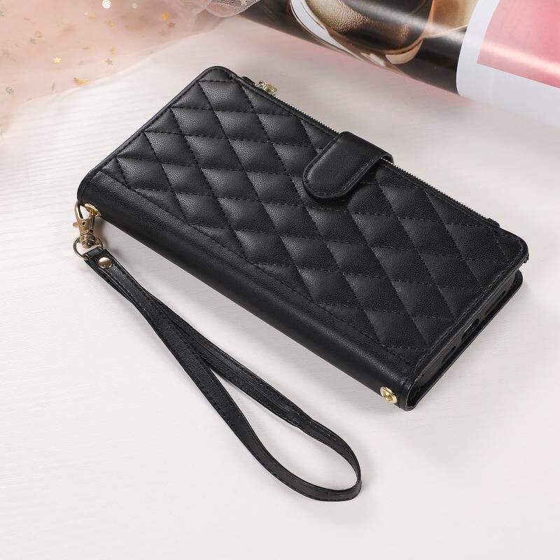 Θήκη τηλεφώνου από δέρμα με φερμουάρ και ρόμβους για iPhone 7 Plus / 8 Plus (Μωβ)