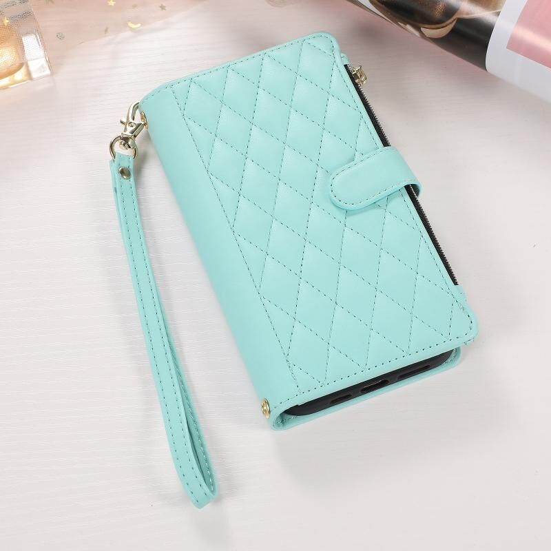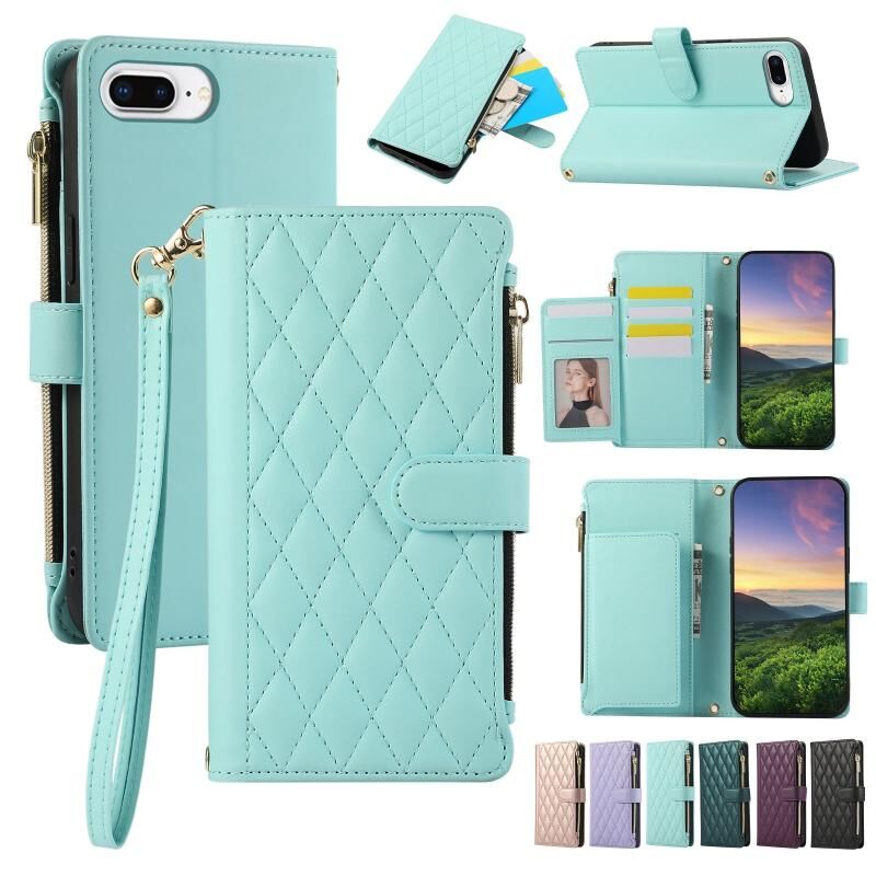 For iPhone 7 Plus / 8 Plus Rhombic Zipper Wallet Leather Phone Case(Cyan)