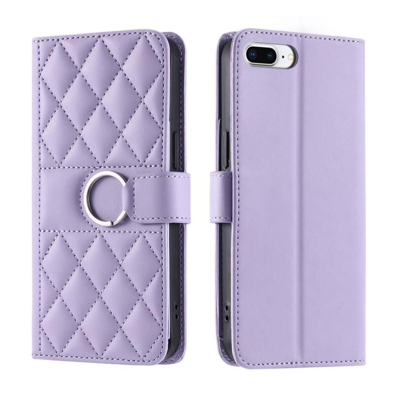 For iPhone 7 Plus / 8 Plus Ring Buckle Rhombic Leather Phone Case(Purple)