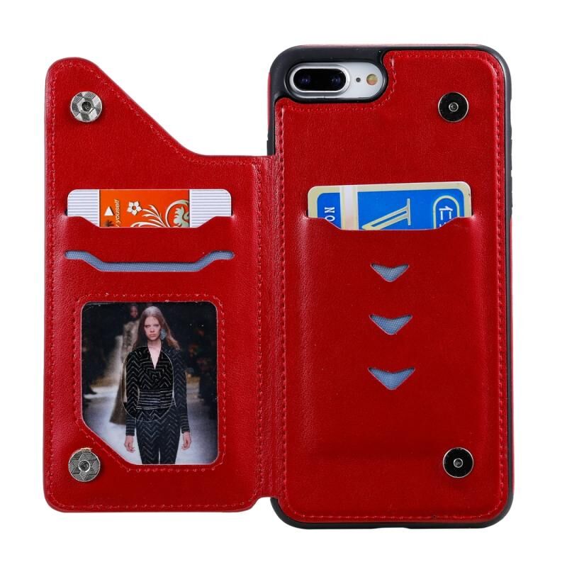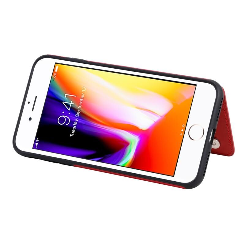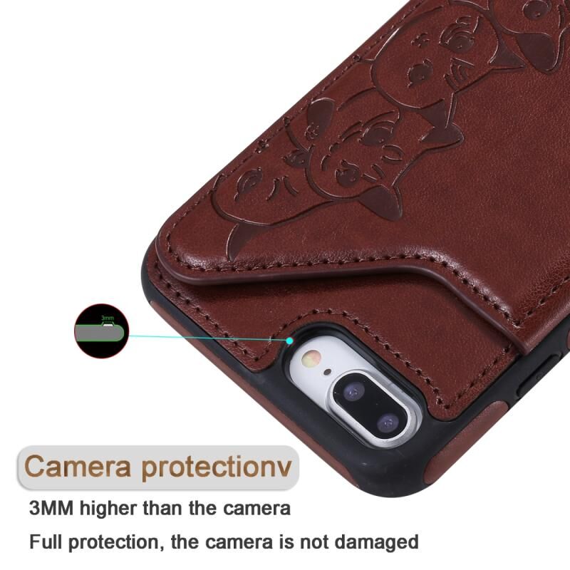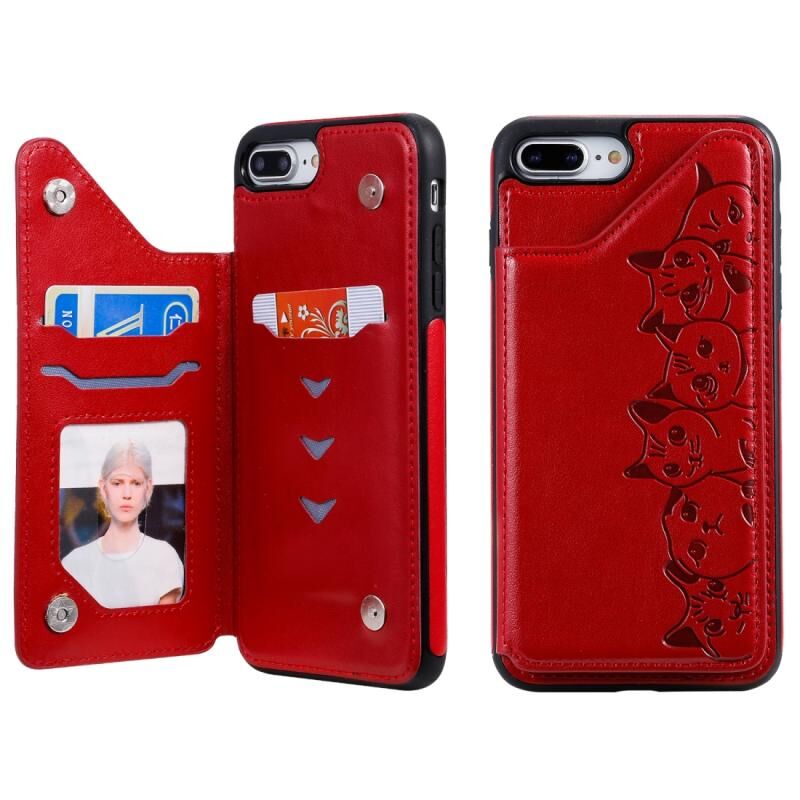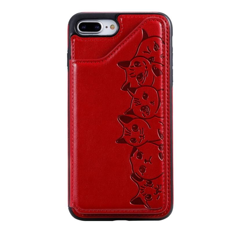 For iPhone 7 Plus / 8 Plus Six Cats Embossing Pattern Protective Case with Holder & Card Slots & Photo Frame(Red)
