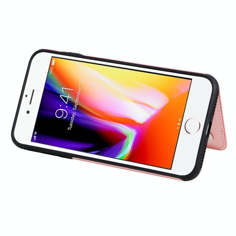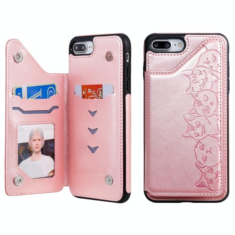 For iPhone 7 Plus / 8 Plus Six Cats Embossing Pattern Protective Case with Holder & Card Slots & Photo Frame(Rose Gold)