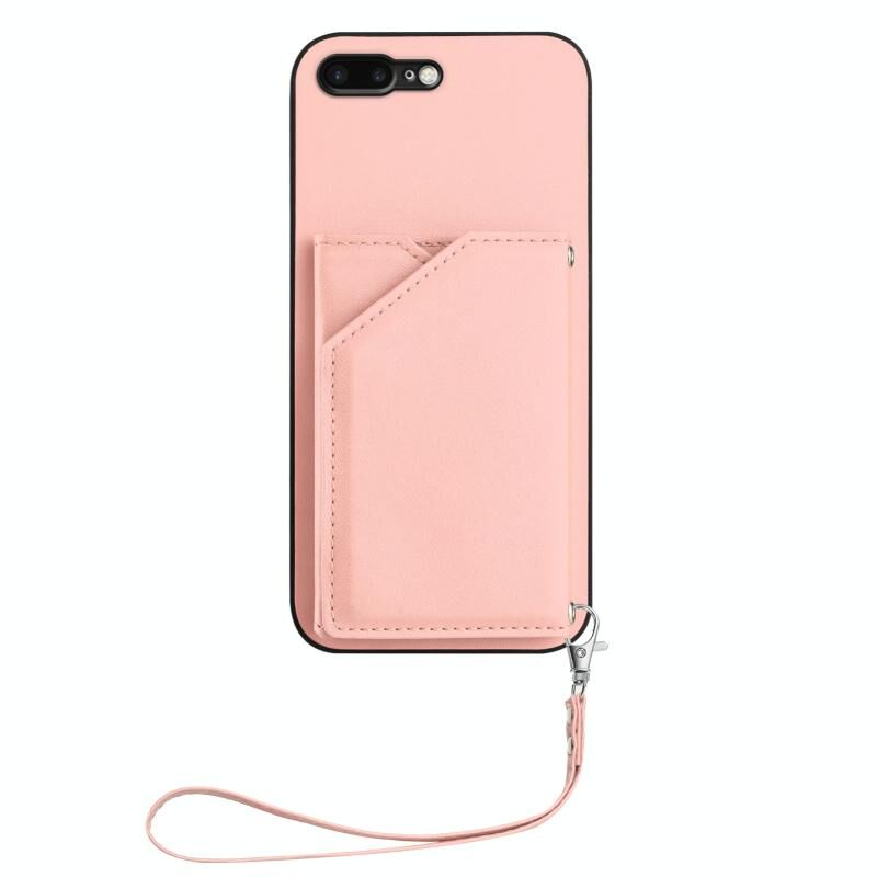 Θήκη τηλεφώνου με υφή δέρματος για iPhone 7 Plus / 8 Plus με τέσσερις θήκες για κάρτες και λουρί καρπού (Ροζ)