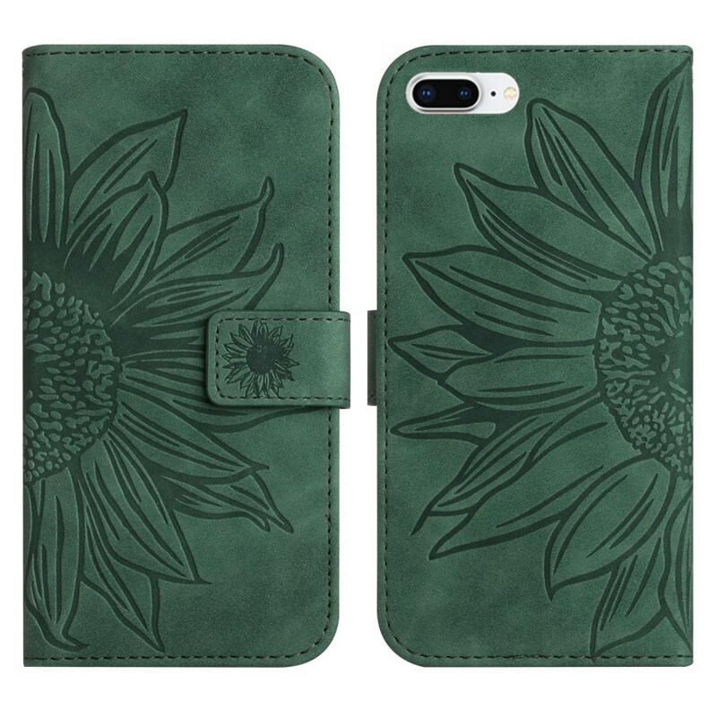 Θήκη τηλεφώνου από δέρμα με σχέδιο ηλιοτρόπιου και αίσθηση δέρματος για iPhone 7 Plus / 8 Plus, με λουρί (Κόκκινο)