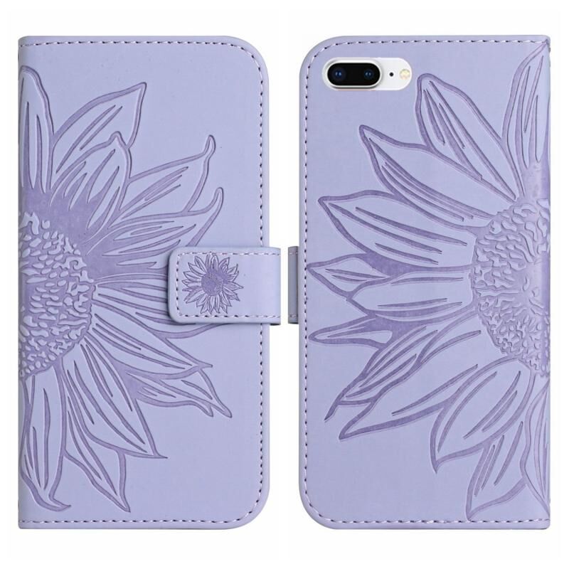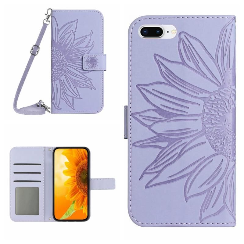 Θήκη τηλεφώνου από δέρμα με σχέδιο ηλιοτρόπιου και αίσθηση δέρματος για iPhone 7 Plus / 8 Plus, με λουρί (Κόκκινο)