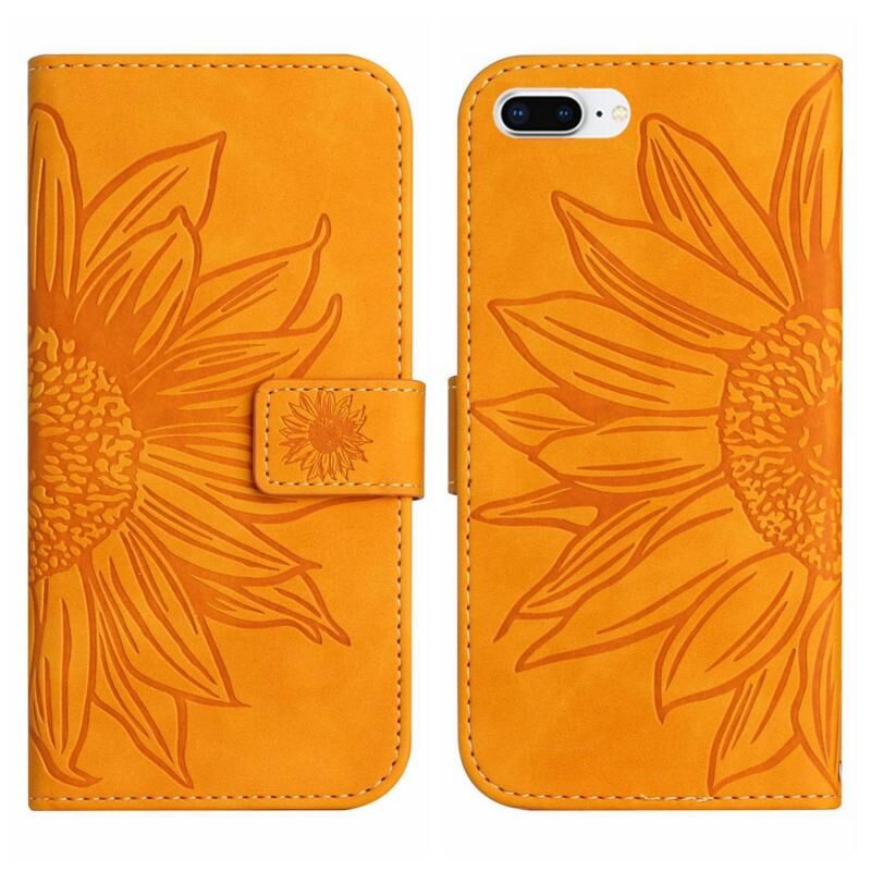 Θήκη τηλεφώνου από δέρμα με σχέδιο ηλιοτρόπιου και αίσθηση δέρματος για iPhone 7 Plus / 8 Plus, με λουρί (Κόκκινο)