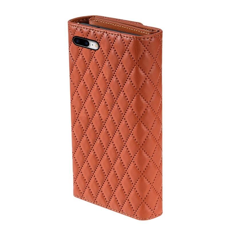 Θήκη τηλεφώνου από δέρμα με ρομβικό σχέδιο και πολλαπλές θήκες καρτών με φερμουάρ για iPhone 7 Plus / 8 Plus (Μαύρο)