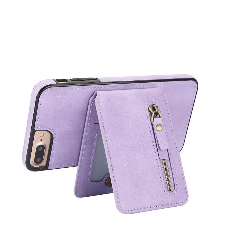 For iPhone 7 Plus / 8 Plus Zipper Wallet Split MagSafe Leather Back Phone Case(Purple)