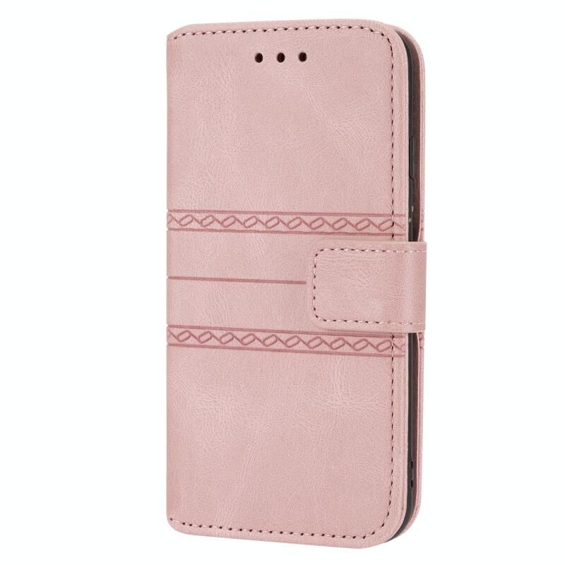 For iPhone 8 / 7 / 6 Embossed Striped Magnetic Buckle Horizontal Flip Leather Case with Holder & Card Slot & Wallet & Photo Frame & Sling(Pink)