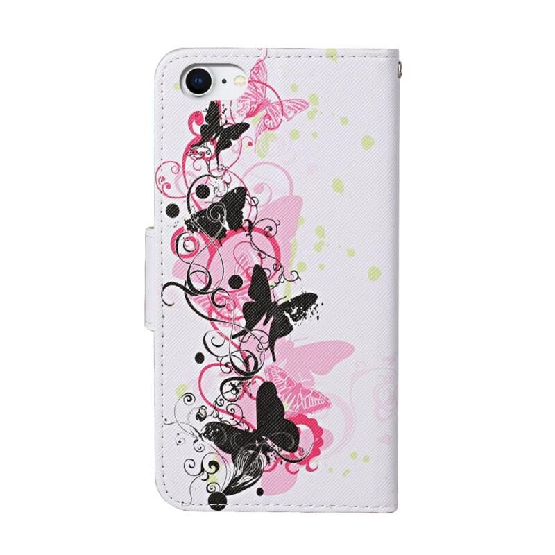 Θήκη δέρματος οριζόντιας αναδίπλωσης με σχέδιο ζωγραφικής και χρώματα για iPhone 8 / 7, με βάση στήριξης & υποδοχές καρτών & πορτοφόλι (Τέσσερα Πεταλούδες)