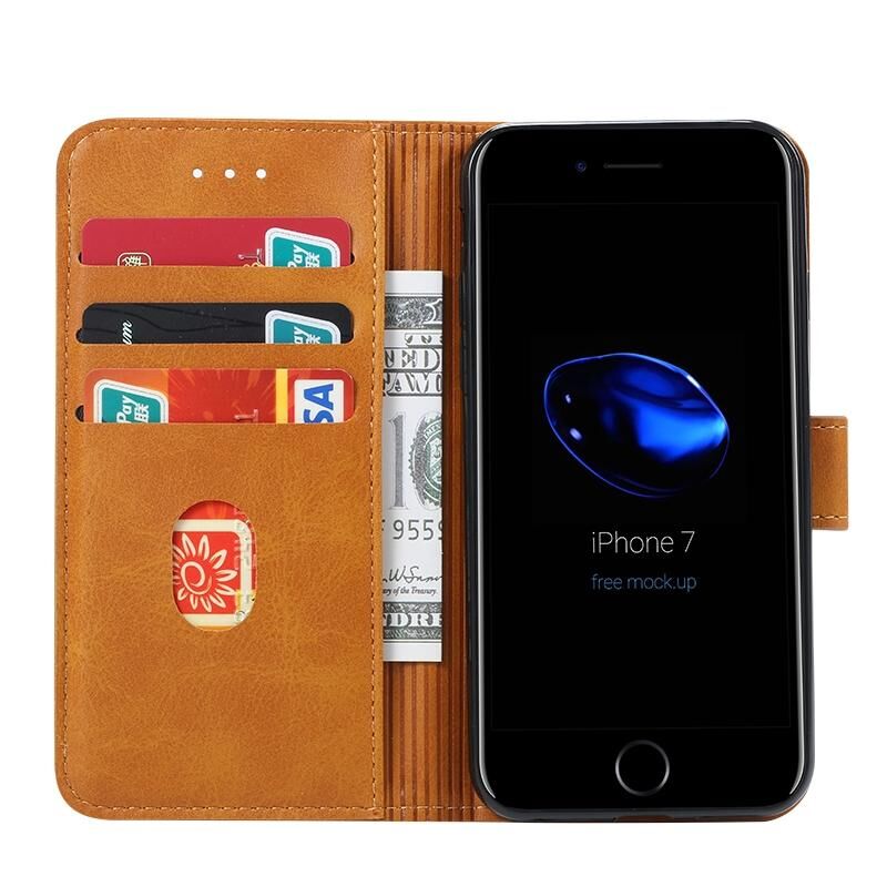 Θήκη δέρματος οριζόντιας αναδίπλωσης με μαγνήτη GUSSIM για iPhone 8 / 7 με βάση & υποδοχές καρτών & πορτοφόλι (Μαύρο) (GUSSIM)