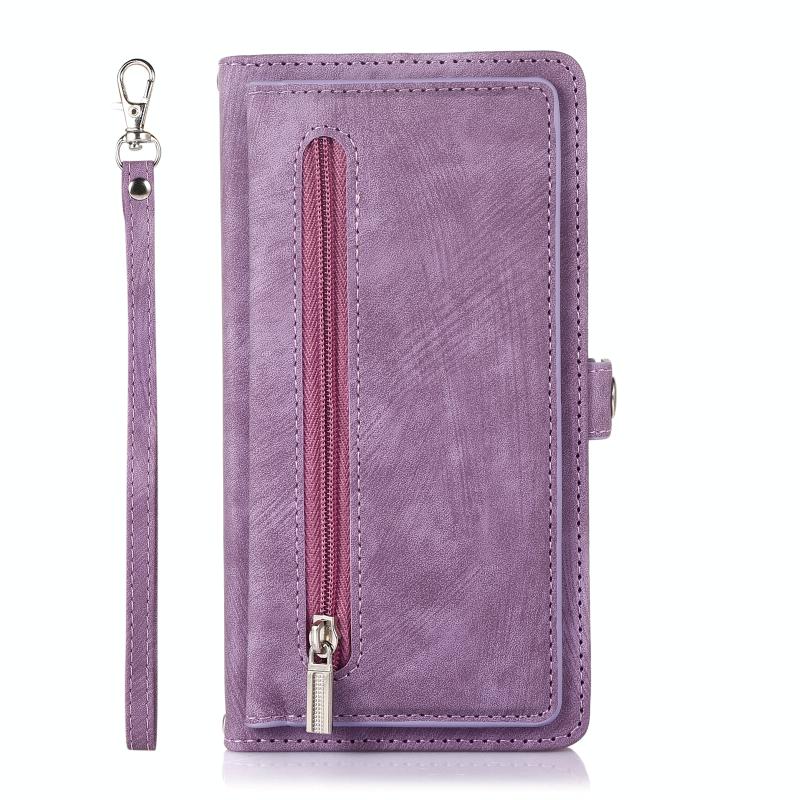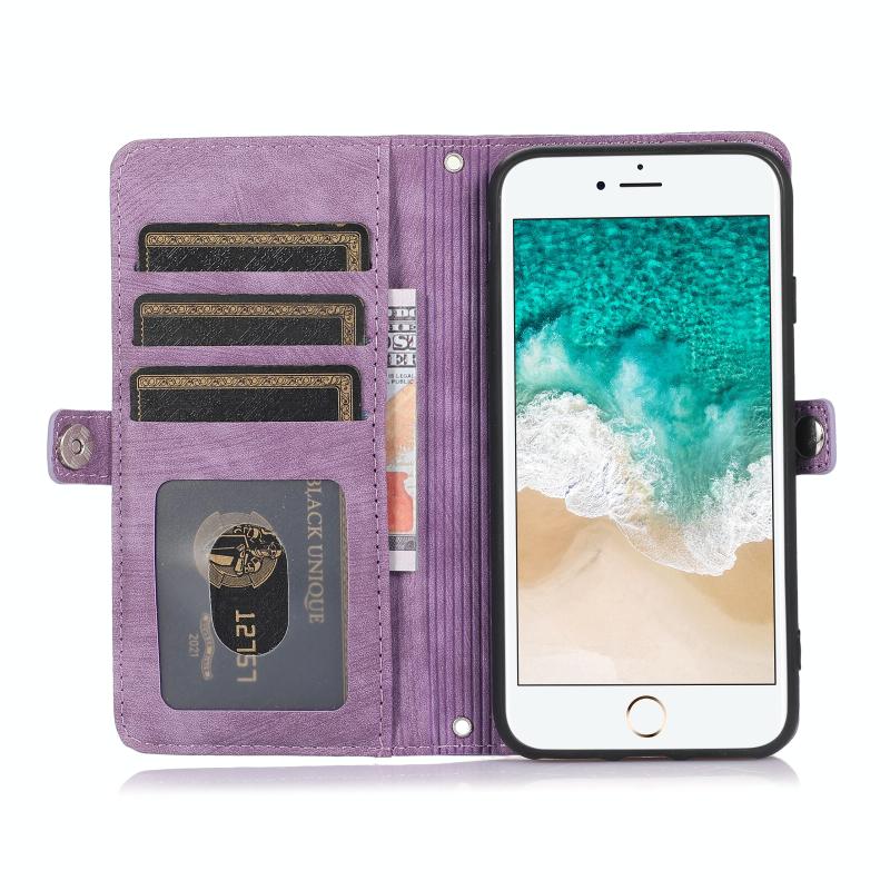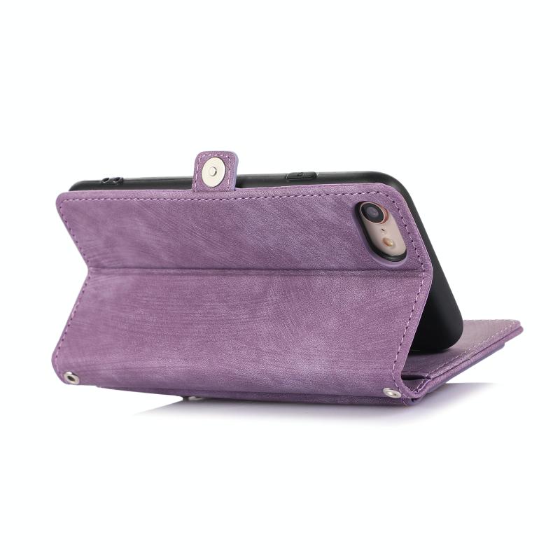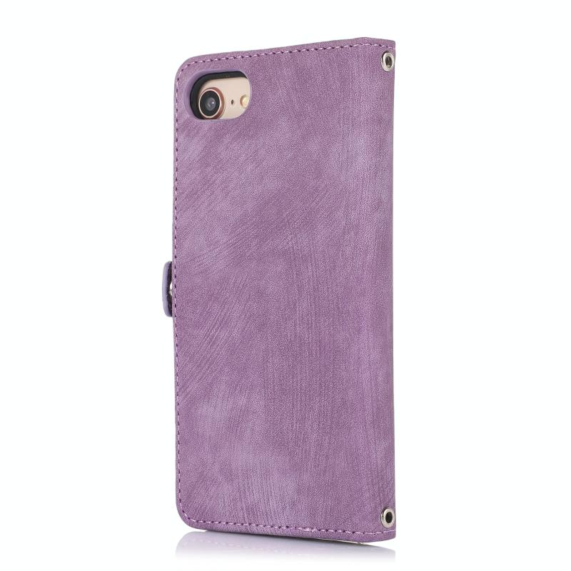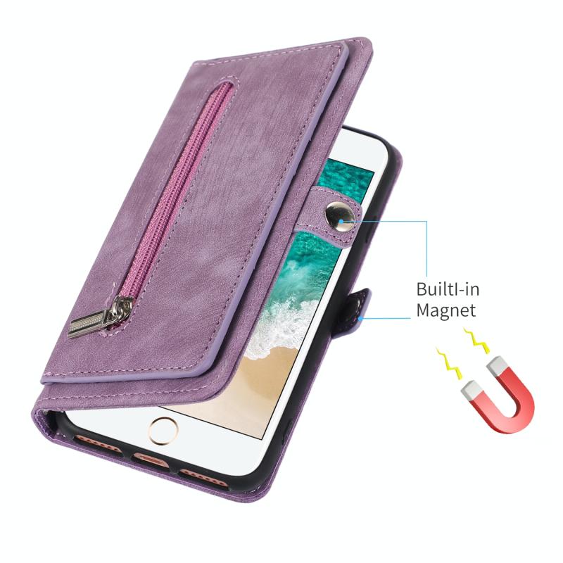 Θήκη iPhone 8 / 7 / SE 2020 2022 Δερμάτινη με Κάρτες & Φερμουάρ (Μωβ)