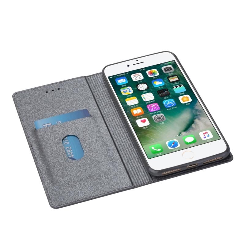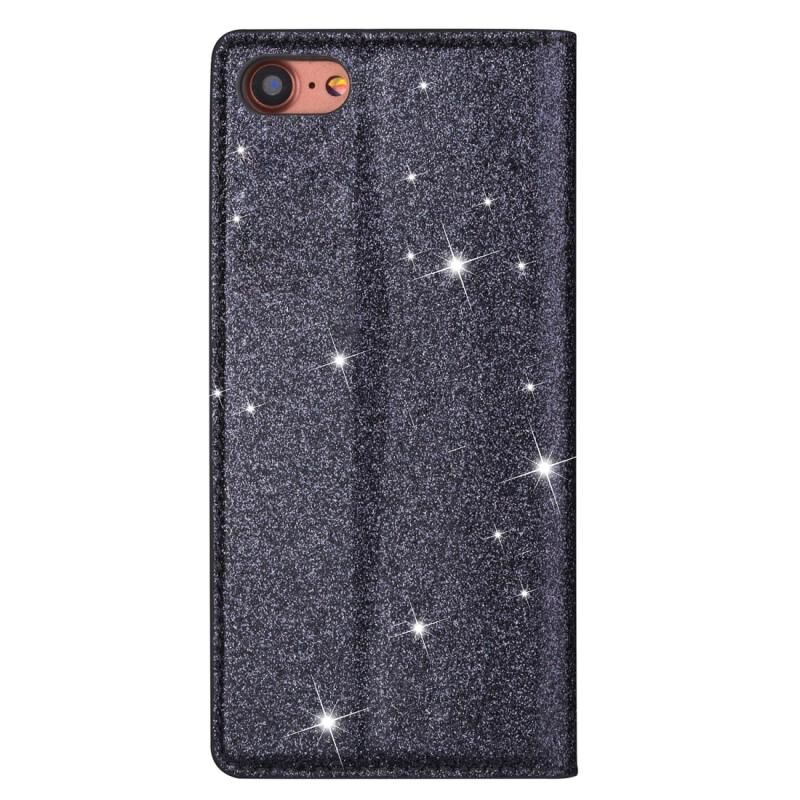 Θήκη δέρματος οριζόντιας αναδίπλωσης με μαγνητικό κλείσιμο και λάμψη για iPhone 8 / 7, με βάση στήριξης & θήκες καρτών (Μαύρο)