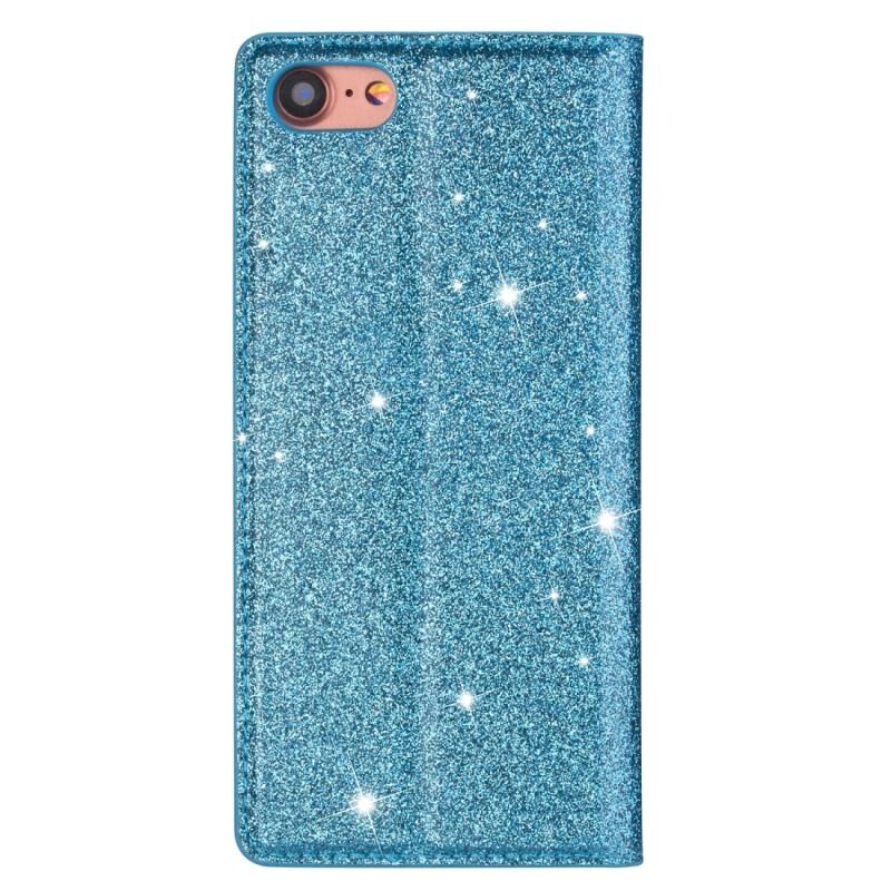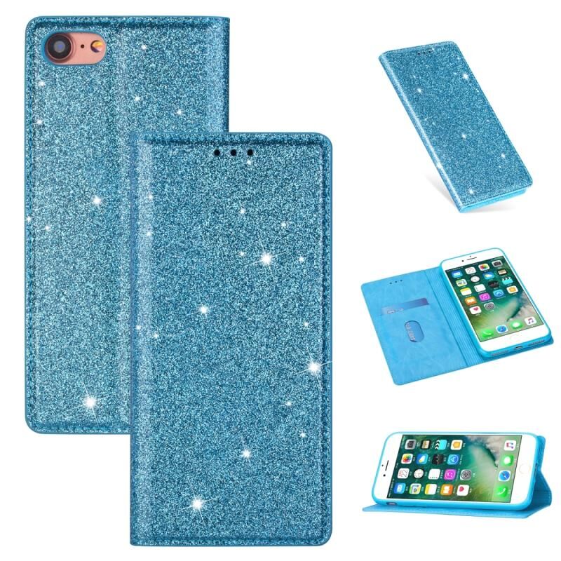 Θήκη δέρματος οριζόντιας αναδίπλωσης με μαγνητικό κλείσιμο και λάμψη για iPhone 8 / 7, με βάση στήριξης & θήκες καρτών (Μαύρο)