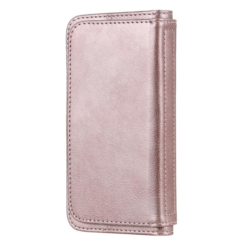 Θήκη για iPhone 8 & 7, πολυλειτουργική μαγνητική με αγκράφα από χαλκό, οριζόντια, μονόχρωμη, από δέρμα με 10 θήκες για κάρτες, πορτοφόλι, βάση & κορνίζα φωτογραφιών (Κρασί)