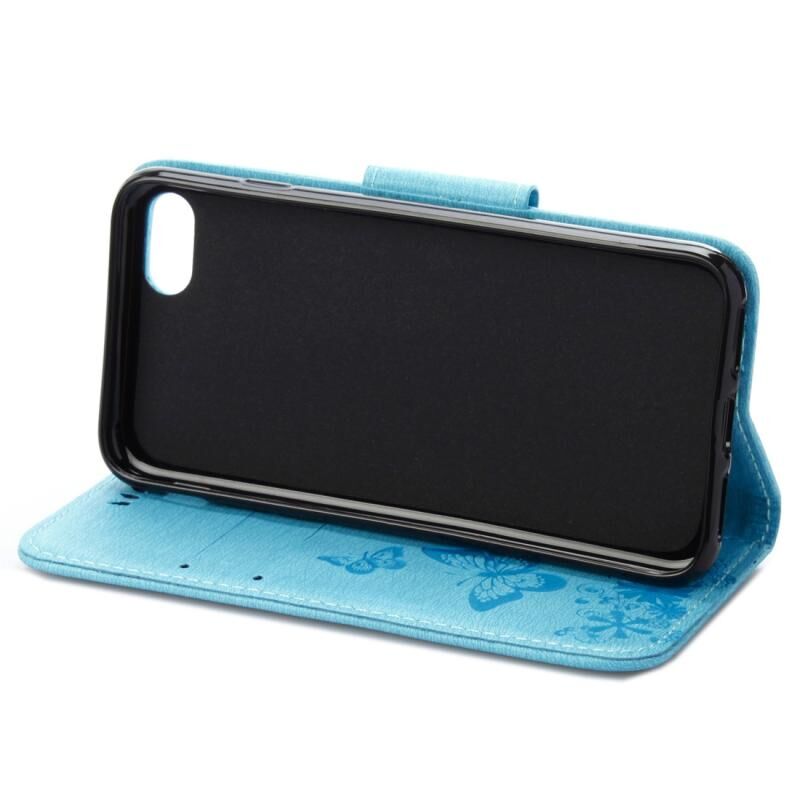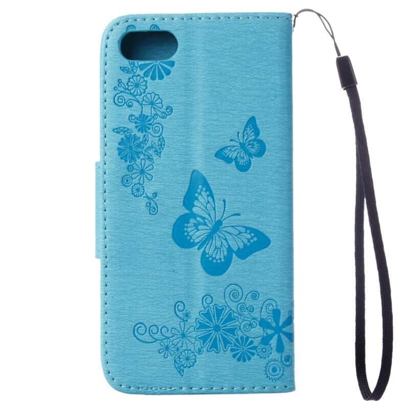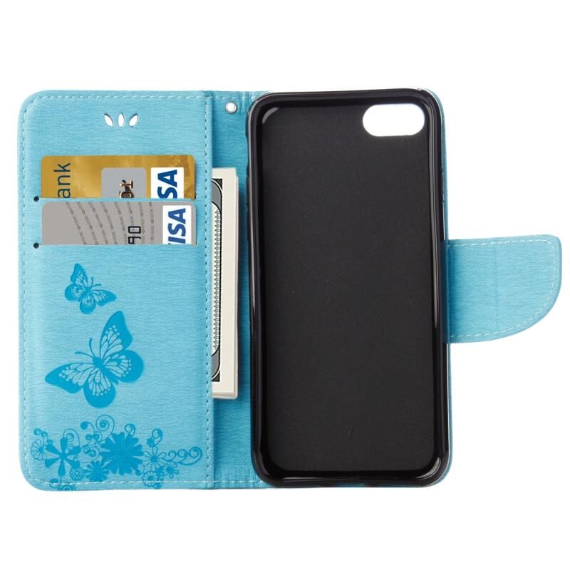 For iPhone 8 & 7 Pressed Flowers Butterfly Pattern Horizontal Flip Leather Case with Holder & Card Slots & Wallet(Blue)