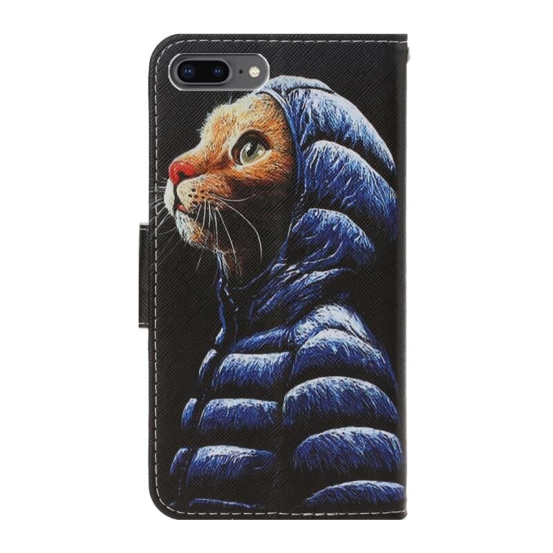Θήκη για iPhone 8 Plus / 7 Plus 3D πολύχρωμη ζωγραφική οριζόντια αναδιπλούμενη από δερματίνη PU με βάση & υποδοχές καρτών & πορτοφόλι (Γάτα με μπουφάν)