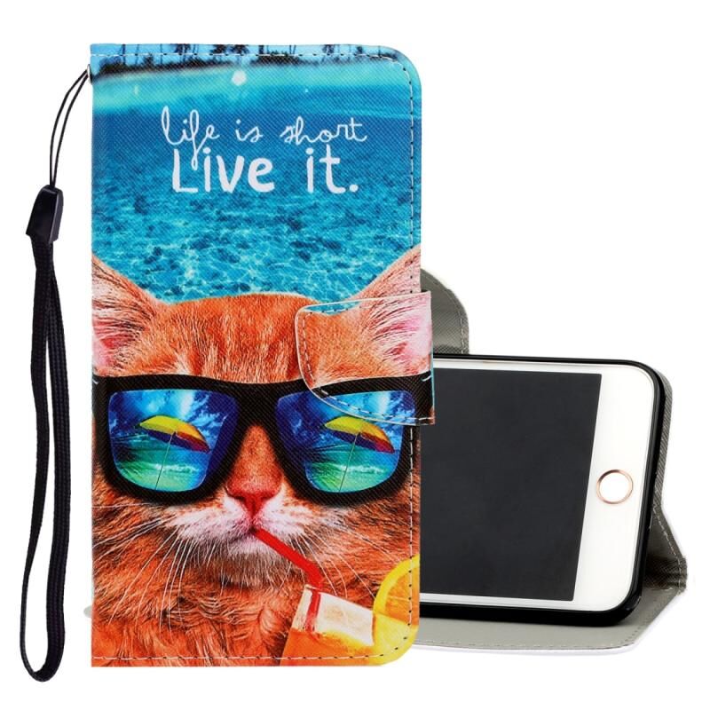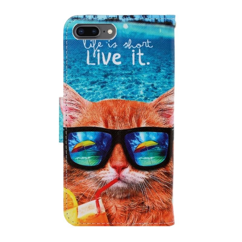 Θήκη για iPhone 8 Plus / 7 Plus 3D πολύχρωμη ζωγραφική οριζόντια αναδιπλούμενη από δερματίνη PU με βάση & υποδοχές καρτών & πορτοφόλι (Υποβρύχια Γάτα)